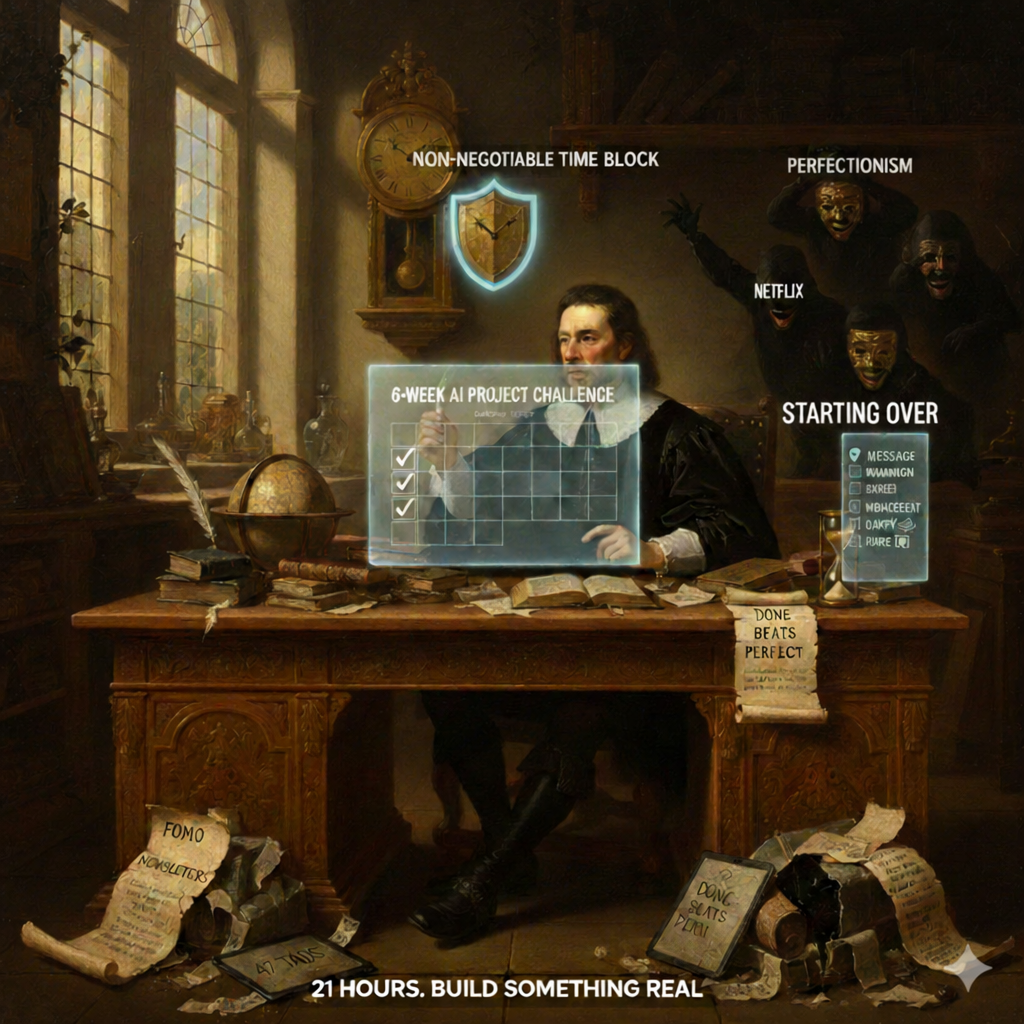 P.S. 30 minutes a day × 6 weeks = 21 hours. That’s enough to build something real. But only if you actually block the time.